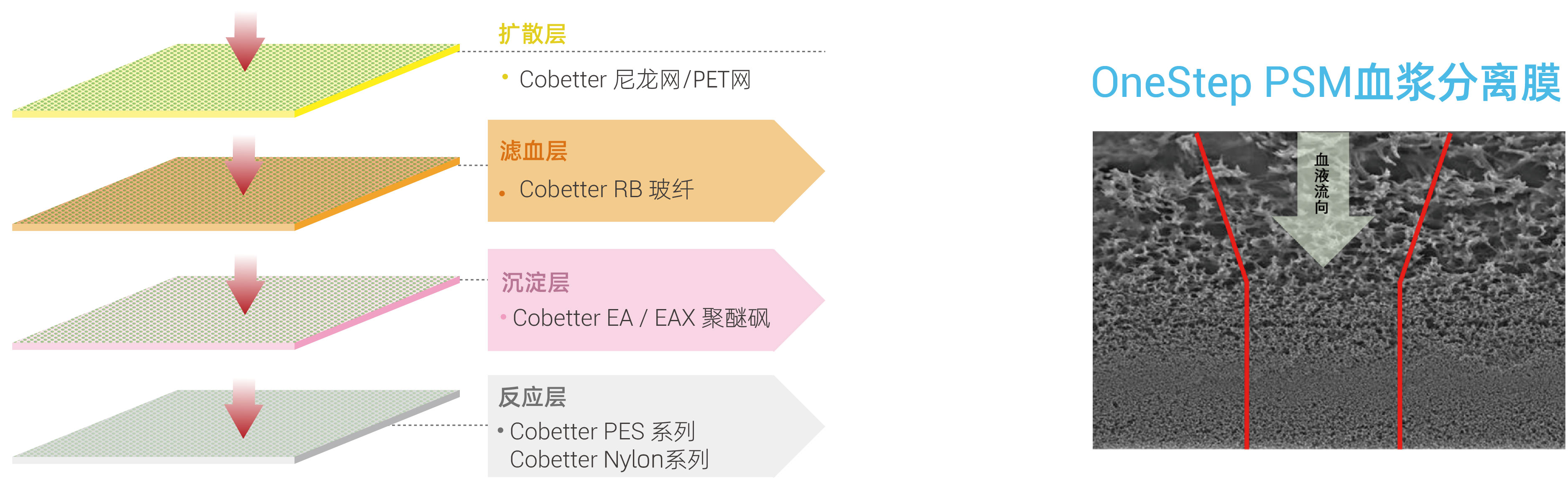 膜材选择:Cobetter RB系列玻纤滤血膜/Cobetter PSM全血分离膜