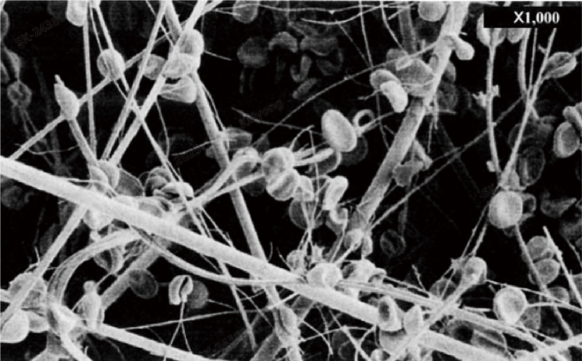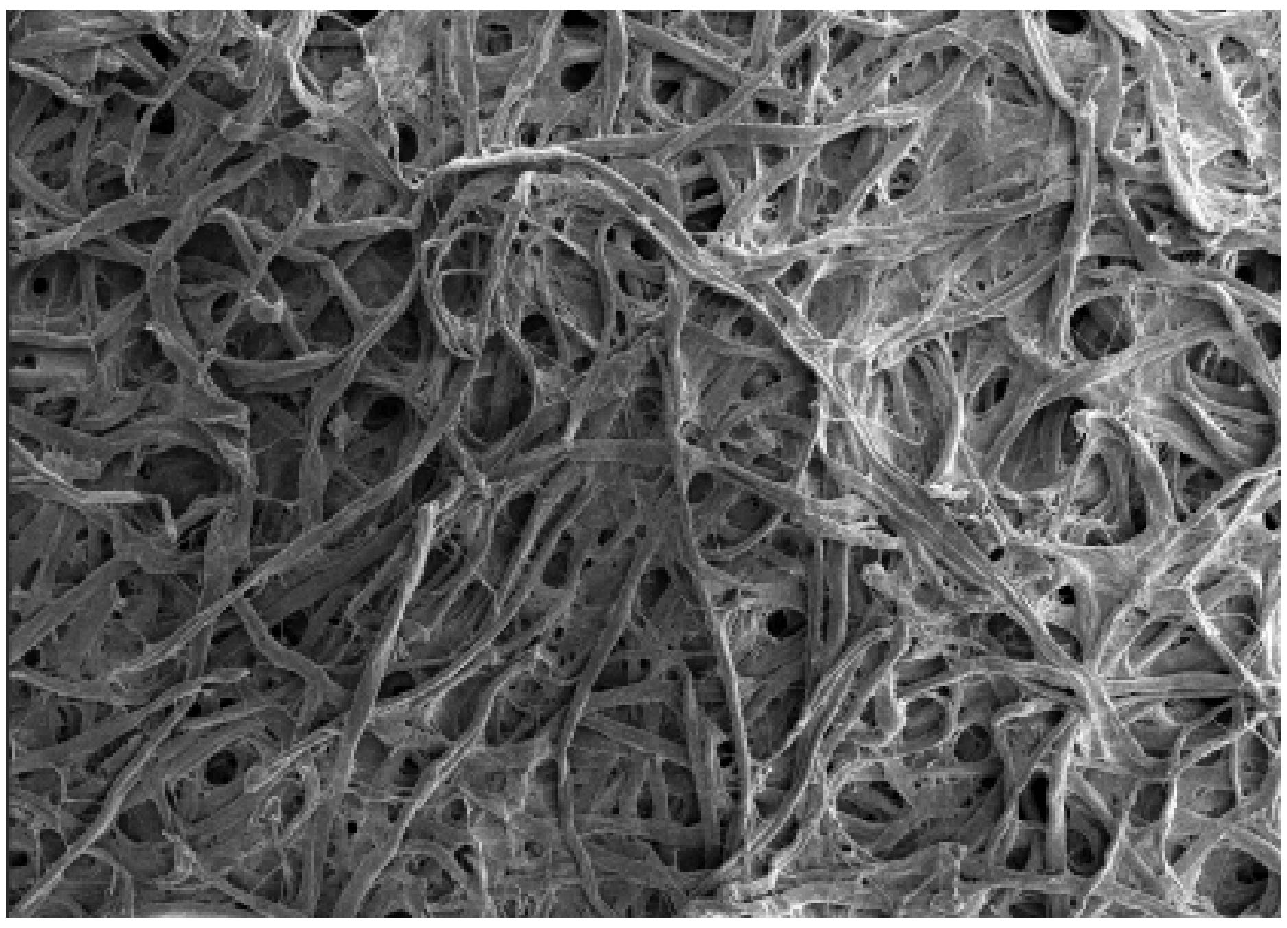在“单层”设计中,所有的化学反应物、催化剂、显色剂等都被集成在一个物理层中,例如尿液检测。棉纤维滤纸是其重要组件,而准确选择一款高吸水量、高吸收速率和高湿强的材料是生产出有效的产品关键。Cobetter拥有一系列优质棉纤产品可用于干化学分析试纸的制作:CF-03、CF-04、CF-31。这些产品符合浸渍检测法对基质的均一性和对吸附活性化学物质不起反应的要求,以下为电镜分析图。