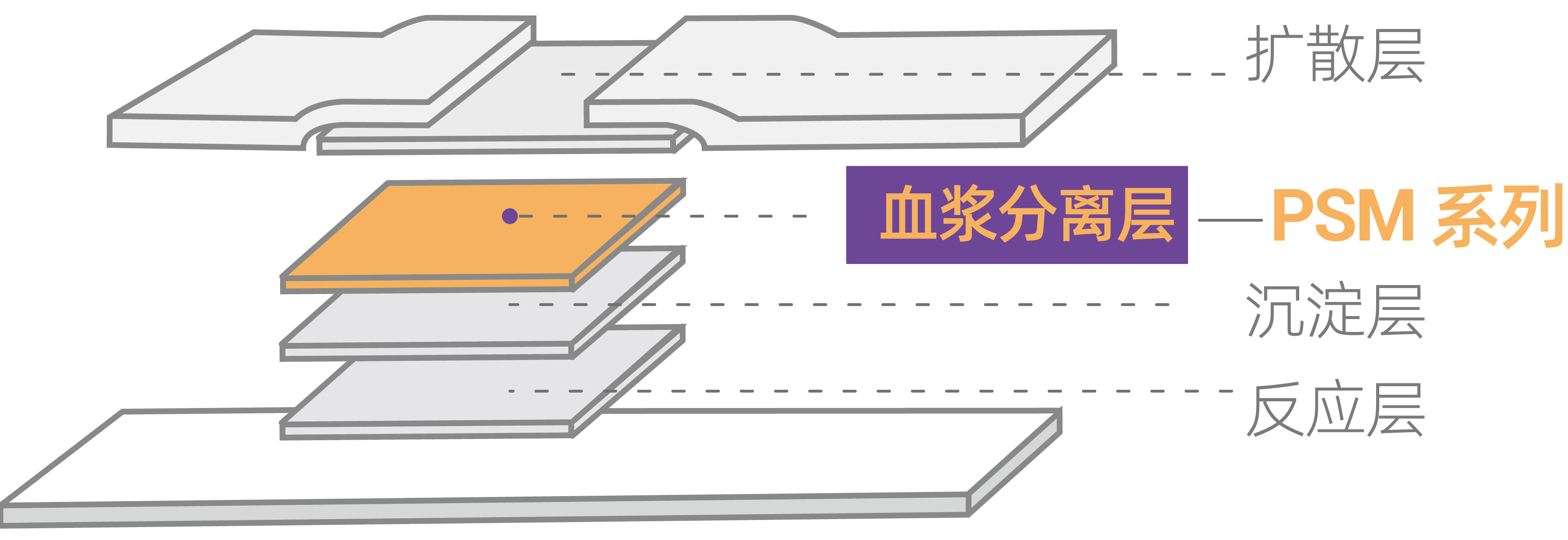 Cobeter开发的PSM系列全血分离膜是专门为POCT诊断而开发的一种新型过滤膜,功能上实现三位一体,层层精准:上层滤血、中层沉淀、下层反应,一步到位,确保检测结果的精准与高效。