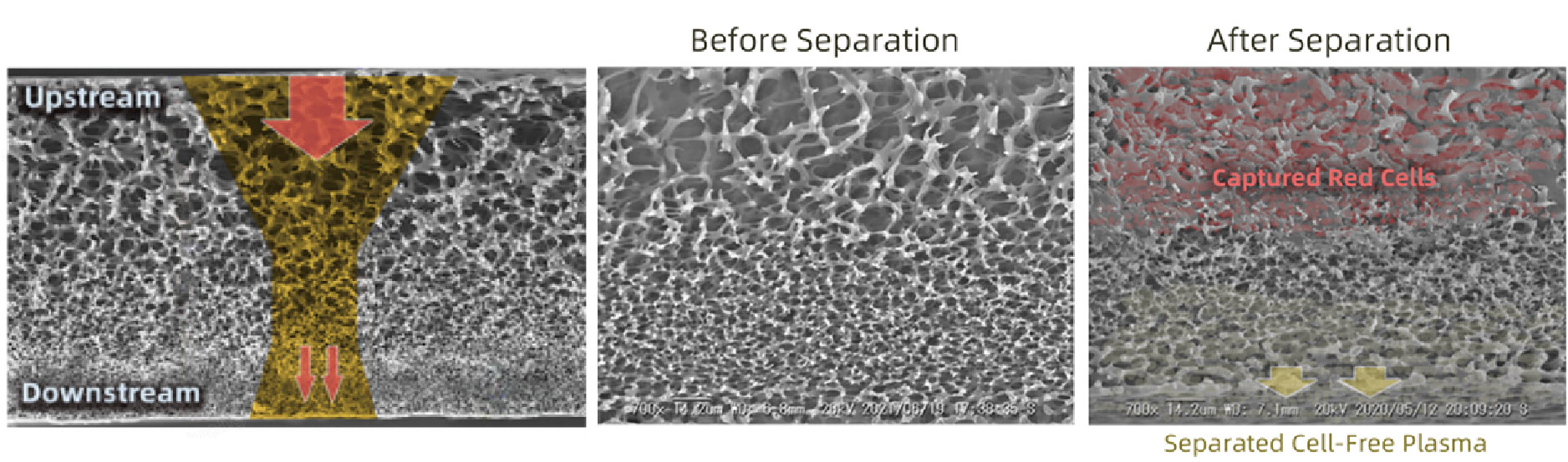 关键功能:过滤红细胞,滤除干扰物质,完成血浆分离